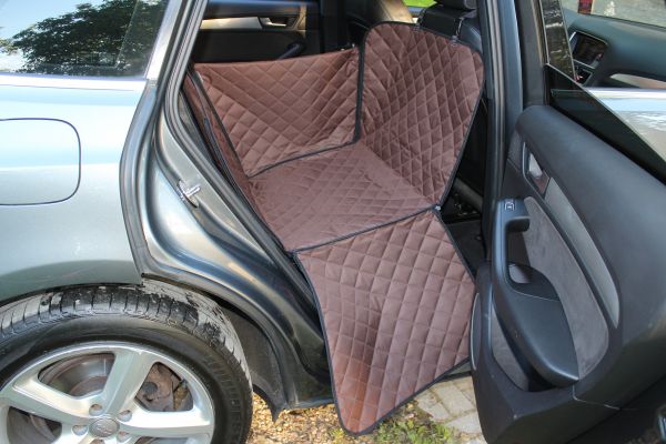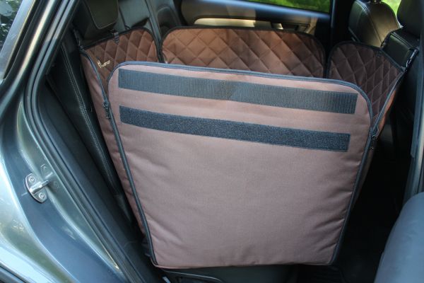 Автогамак для собак с защитой двери и порога автомобиля на половину заднего сидения.