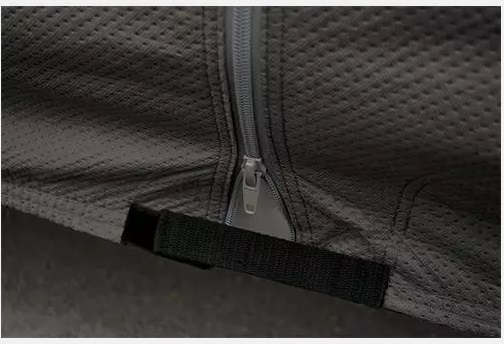 Этот чехол имеет эластичные кромки для плотного прилегания, а также прочные нейлоновые ремешки и пластиковые пряжки, которые надежно фиксируют его даже в суровые погодные условия. Светоотражатели спереди и сзади улучшают видимость в темное время суток, а боковые молнии обеспечивают легкий доступ к дому на колесах без снятия чехла. Воздухопроницаемая ткань предотвращает накопление влаги, снижая риск появления плесени при длительном хранении. Кроме того, к чехлу прилагается удобная сумка для транспортировки и хранения.