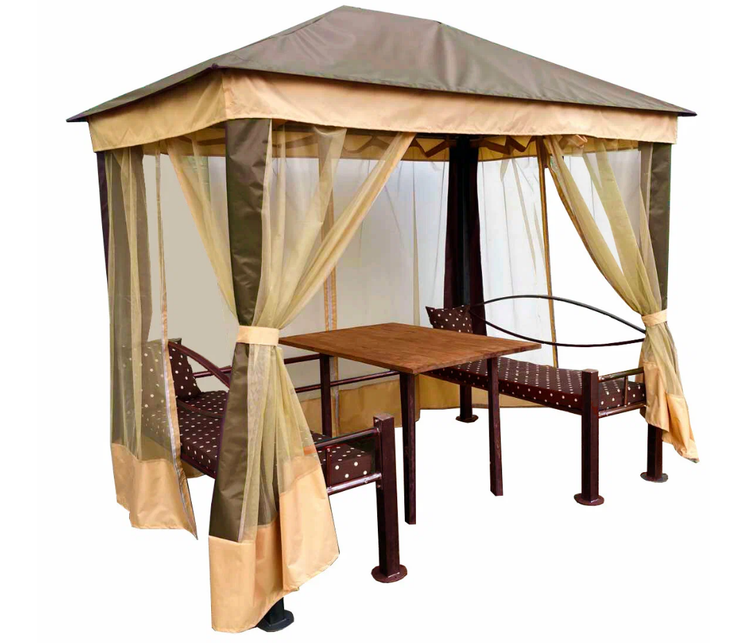 Предлагаем вам купить комплект для шатра садового Визит. В комплект входит крыша-тент и антимоскитные сетки, которые также выполняют роль стенок шатра. Подойдёт комплект для размеров шатра: 255 х 175 х 235 см. Важно: мы являемся производителями данной продукции, поэтому можем изготовить по вашим размерам! При производстве мы используем синтетический материал - полиэстер Oxford, который является устойчивым к внешним воздействиям, влаге, ветру.